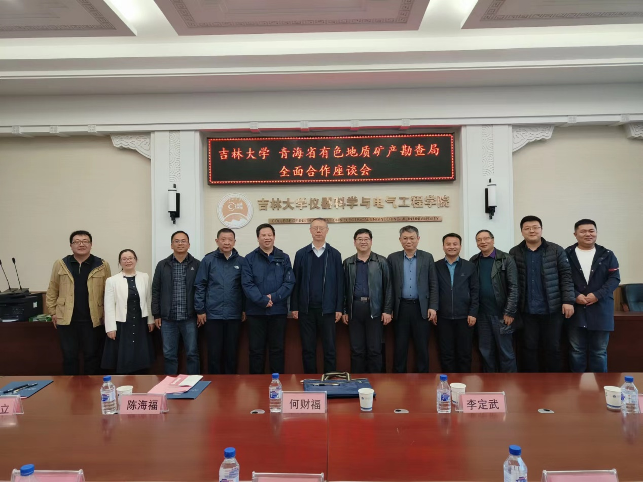On April 6th, Chen Haifu, deputy director of the Bureau of Non-ferrous Geology and Mineral Exploration of Qinghai Province, came to the National Geophysical Exploration Equipment Engineering Technology Research Center of Jilin University, and the two sides had a discussion and exchange on deepening cooperation, with academician Lin Jun, Minister of Geology Department of Jilin University, attending the symposium, Secretary Qiu Zengkai, Dean JI Yanju and Professor Duan Qingming of CIEE attending the meeting, and the meeting was chaired by Prof. Wang Yanzhang, Executive Deputy Director of the Center.