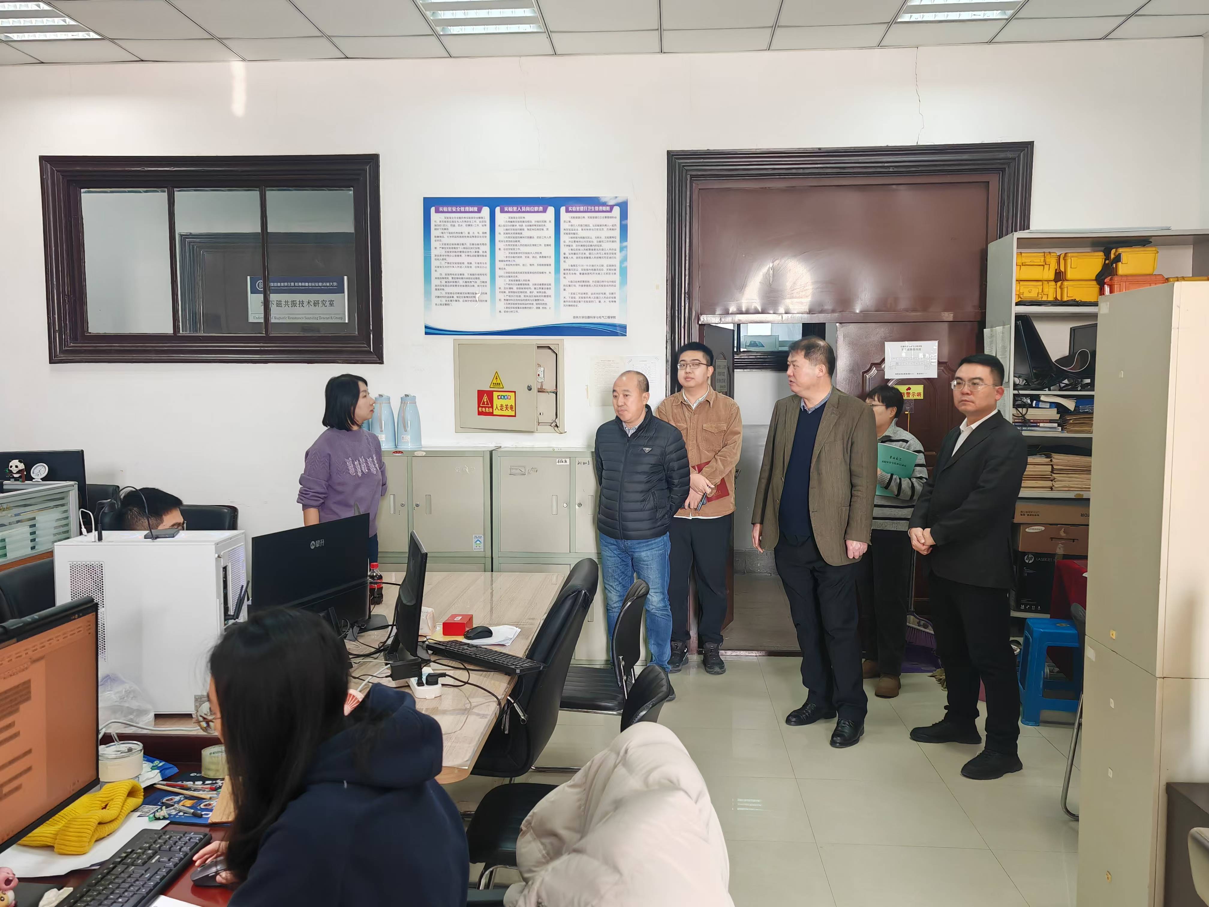 党委书记邱增凯、行政副院长朱宇、地球信息探测仪器教育部重点实验室行政副主任边江带领相关工作人员对学院各实验室进行了全面细致的检查。