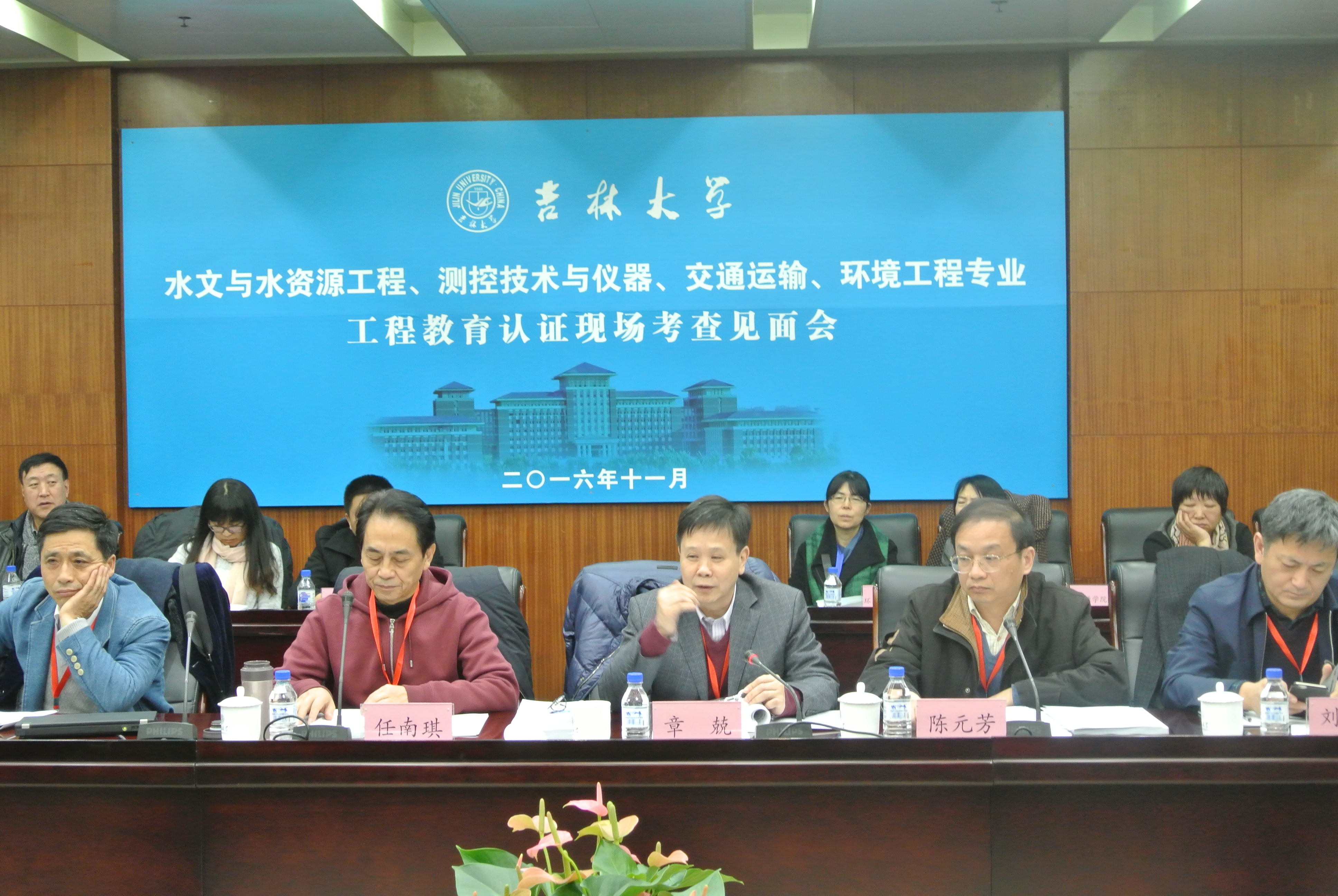 2016年11月7日上午八时三十分,在吉林大学中心校区东荣第一会议室以湘潭大学章兢教授为联合组长的工程教育认证专家组莅临我校,召开了水文与水资源工程、环境工程、测控技术与仪器、交通运输工程四个专业的现场评估见面会。吉林大学副校长陈岗,教务处、人事处、财务处、实验设备与管理处、图书馆、学工部、校团委等相关部门负责人,学院部分领导以及测控技术与仪器专业相关教师参加了见面会。