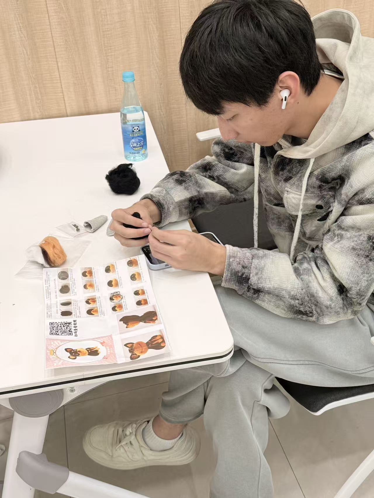 戳戳乐的制作过程看似简单,却需要专注和耐心。随着戳针一下一下地刺入羊毛中,松软的羊毛纤维逐渐紧实成型,一个个可爱的小物件在同学们手中诞生。在这个过程中,大家暂时忘却了科研的压力和论文的烦恼,全身心投入到创作的乐趣之中,体会着“心流”带来的宁静与专注。
