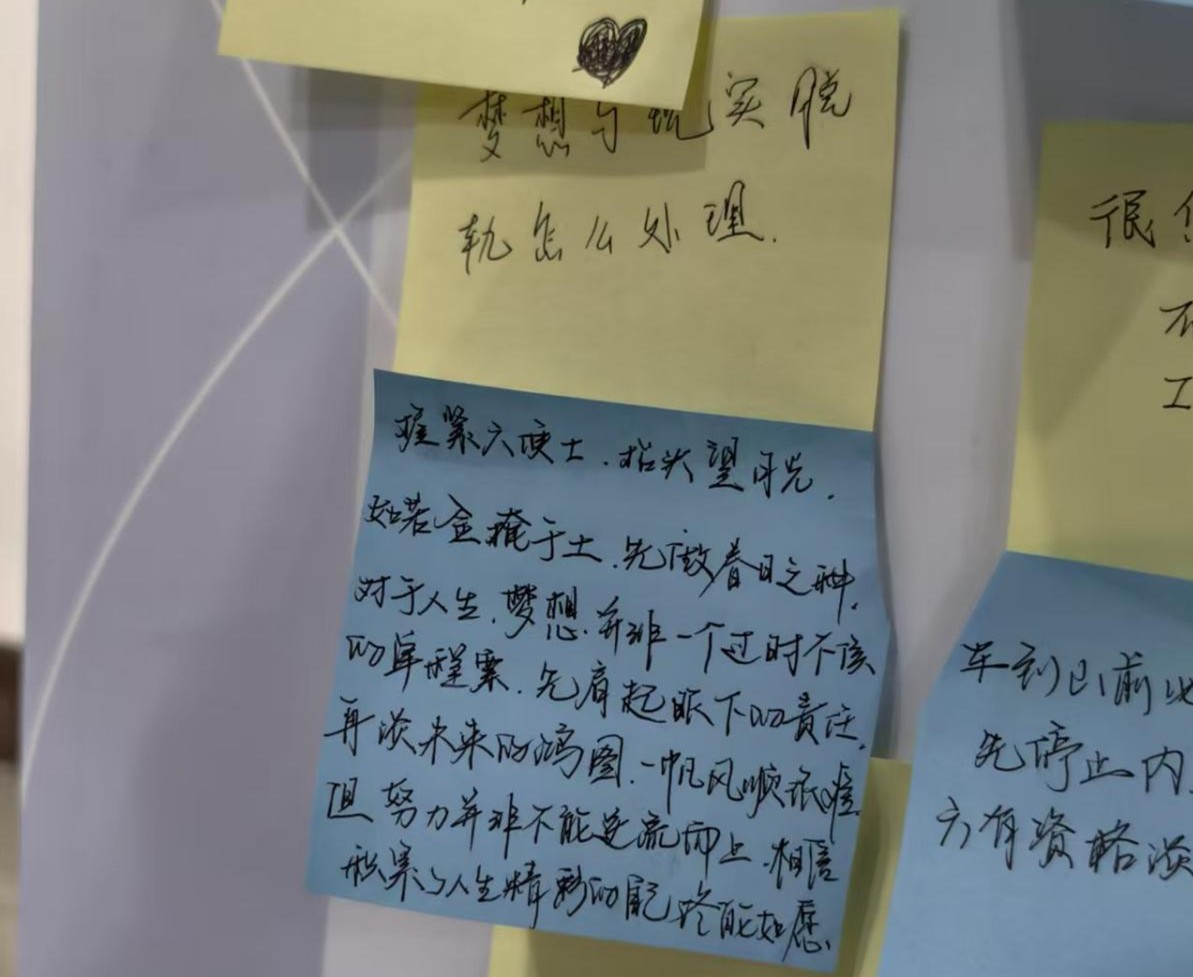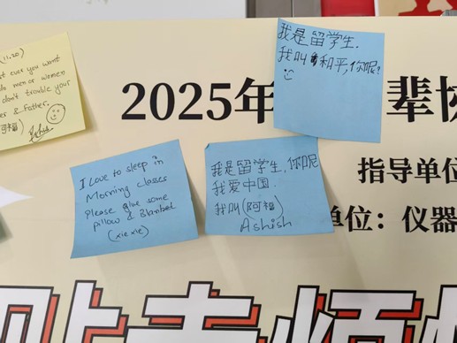 活动期间,同学们积极投入、敞开心扉,不仅勇敢表达了内心的困惑与压力,也在互相倾听与支持中感受到了集体的温暖,增强了同学们之间的内在凝聚力。值得关注的是,多位留学生也积极参与其中,他们用中文或英文分享心情,以真诚的交流打破文化的隔阂,与中国学生一道在解忧墙上搭建起跨越文化的心灵沟通桥梁。