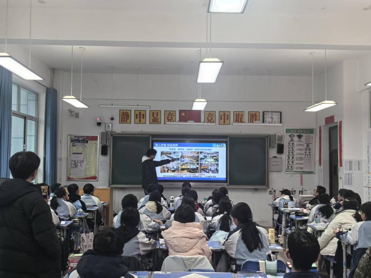 宣讲前,团队紧锣密鼓筹备,分工明确,反复润色文稿、打磨细节,将零散高校信息整合,为后续宣讲效果做好充分保障。活动伊始,主讲人何腾飞以自身大学的蜕变历程为切入点,生动介绍吉林大学深厚办学底蕴与仪电学院学科优势:从“双一流”建设平台实力,到核心专业特色亮点;从实验室先进硬件,到毕业生广阔就业深造前景,重点解读学科优势与招生政策,用真实案例让信息更易理解,让宣讲更有温度。