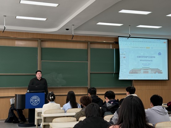 会议伊始,史博日老师对全体转专业同学的到来表示热烈欢迎,随后详细介绍自身工作职责、年级日常管理要求,以及学院学生帮扶、学业指导等相关服务举措,让同学们全面了解年级管理体系,感受到学院的关怀与重视。针对专业学习核心内容,史博日老师结合学院学科优势,细致讲解学院各专业的培养方案、核心课程体系、学科发展方向及就业升学前景,拆解转专业后课程衔接、学分认定等关键事项,帮助同学们找准学习定位,制定合理学业规划。