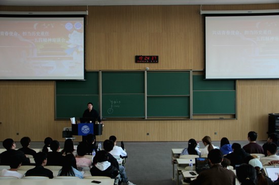 团委负责人史博日老师与团学组织主要学生干部围绕 “共话青春使命,勇担历史重任”主题,畅谈五四精神感悟,彰显新时代青年担当。